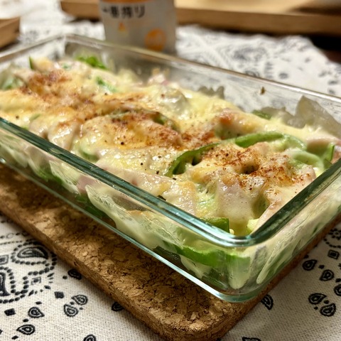 ピーマンのチーズ焼き。山盛りのピーマンがあっという間になくなる、我が家の無限ピーマンpart7。