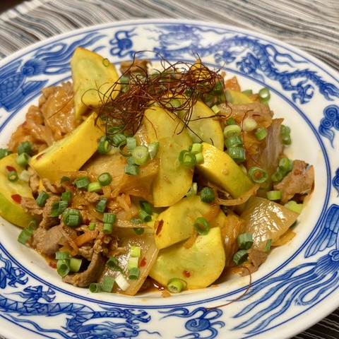 ズッキーニたっぷり豚キムチ。夏野菜たっぷりでヘルシー、チーズ焼きにしても美味しい超簡単おつまみ。