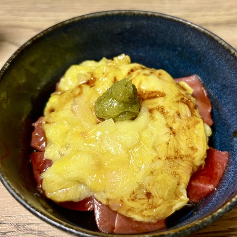 づけマグロと花オクラの山かけ風。山芋アレルギーでも楽しめる山かけ風、花オクラの優しい···