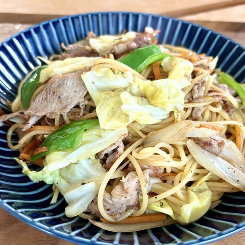 スパゲッティ田舎。塩味の肉野菜炒めとパスタが不思議に合う、孤独のグルメの再現風レシピ。