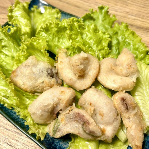 コブクロのにんにく塩唐揚げ。コリコリの食感がたまらない、お酒が進むスタミナおつまみ。